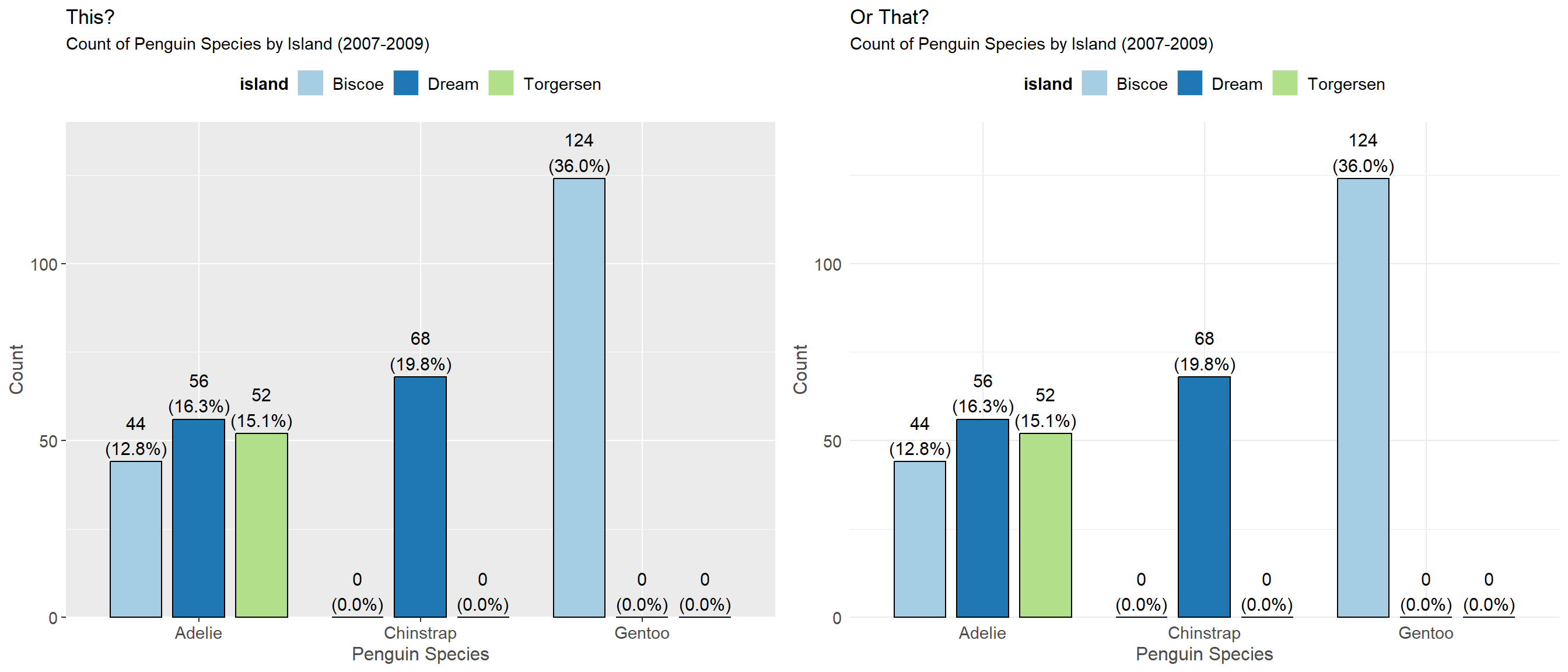 that <- plot_grpfrq(var.cnt = pen$species, var.grp = pen$island, title = "Or That?") +