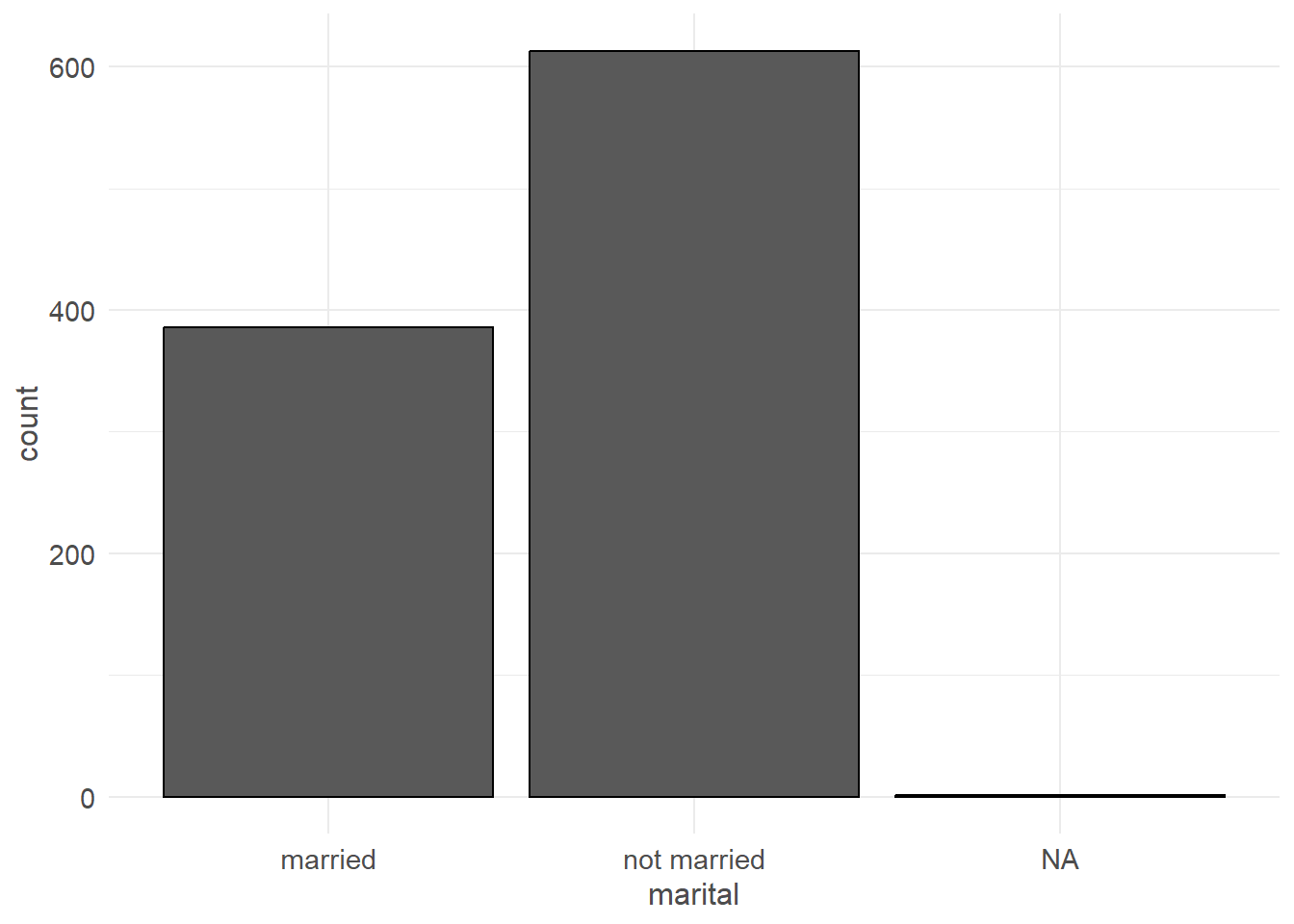 ggplot(NCbirths, aes(x=marital)) + geom_bar()