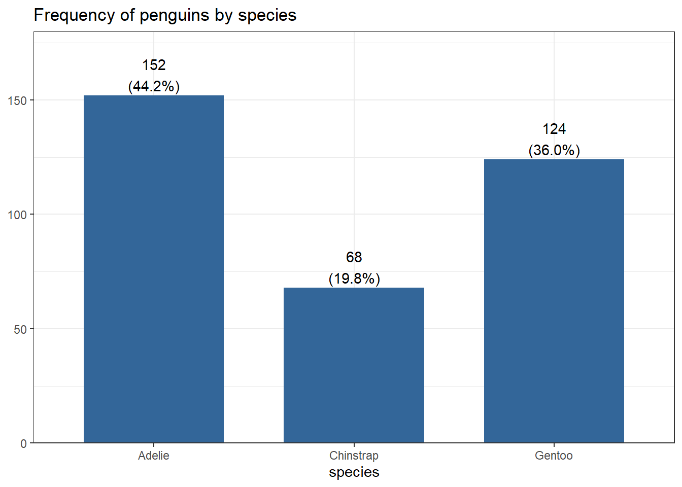 pen |> select(species) |> tbl_summary()| Characteristic | N = 3441 |