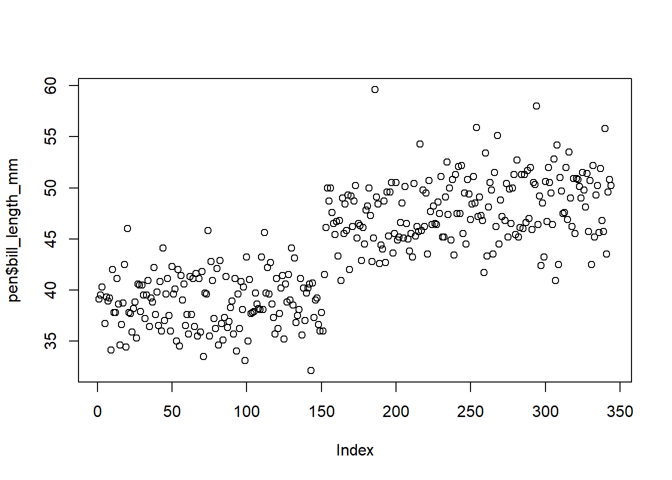 plot(pen$bill_length_mm)