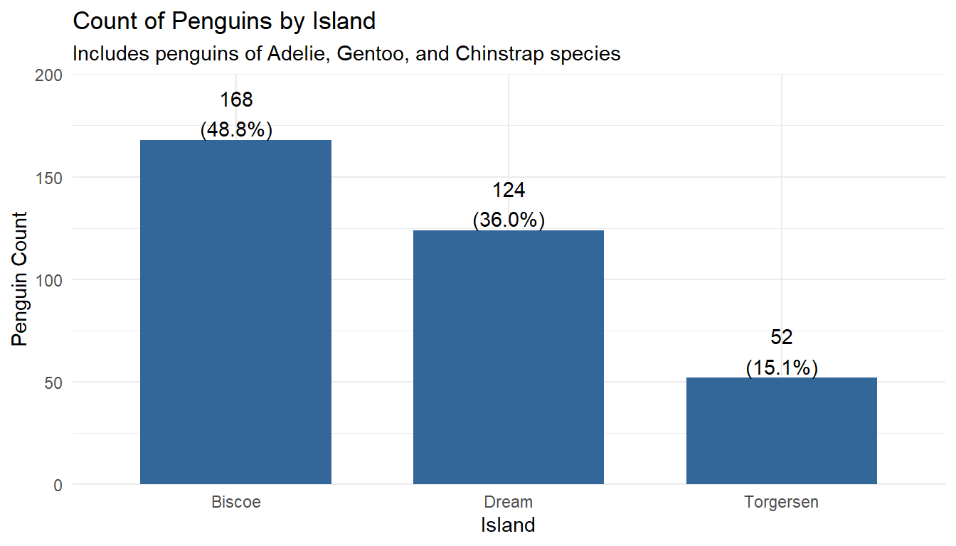 labs(subtitle = "Includes penguins of Adelie, Gentoo, and Chinstrap species") +
