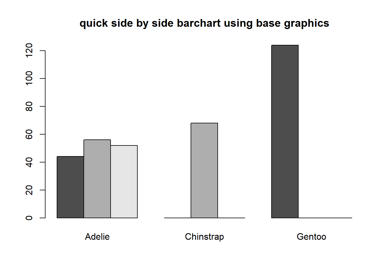 barplot(ps, main="Frequency of Penguins by Species")