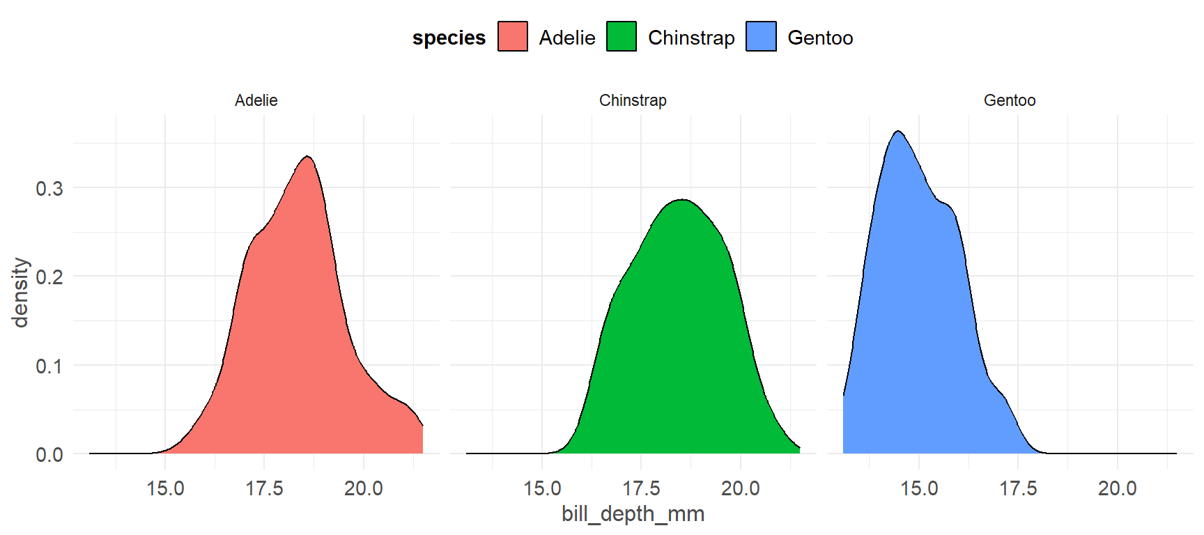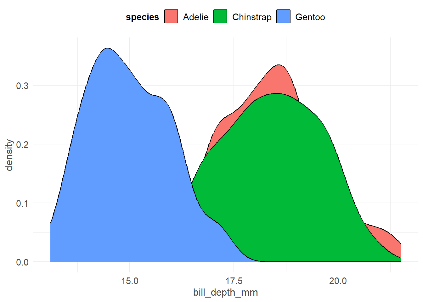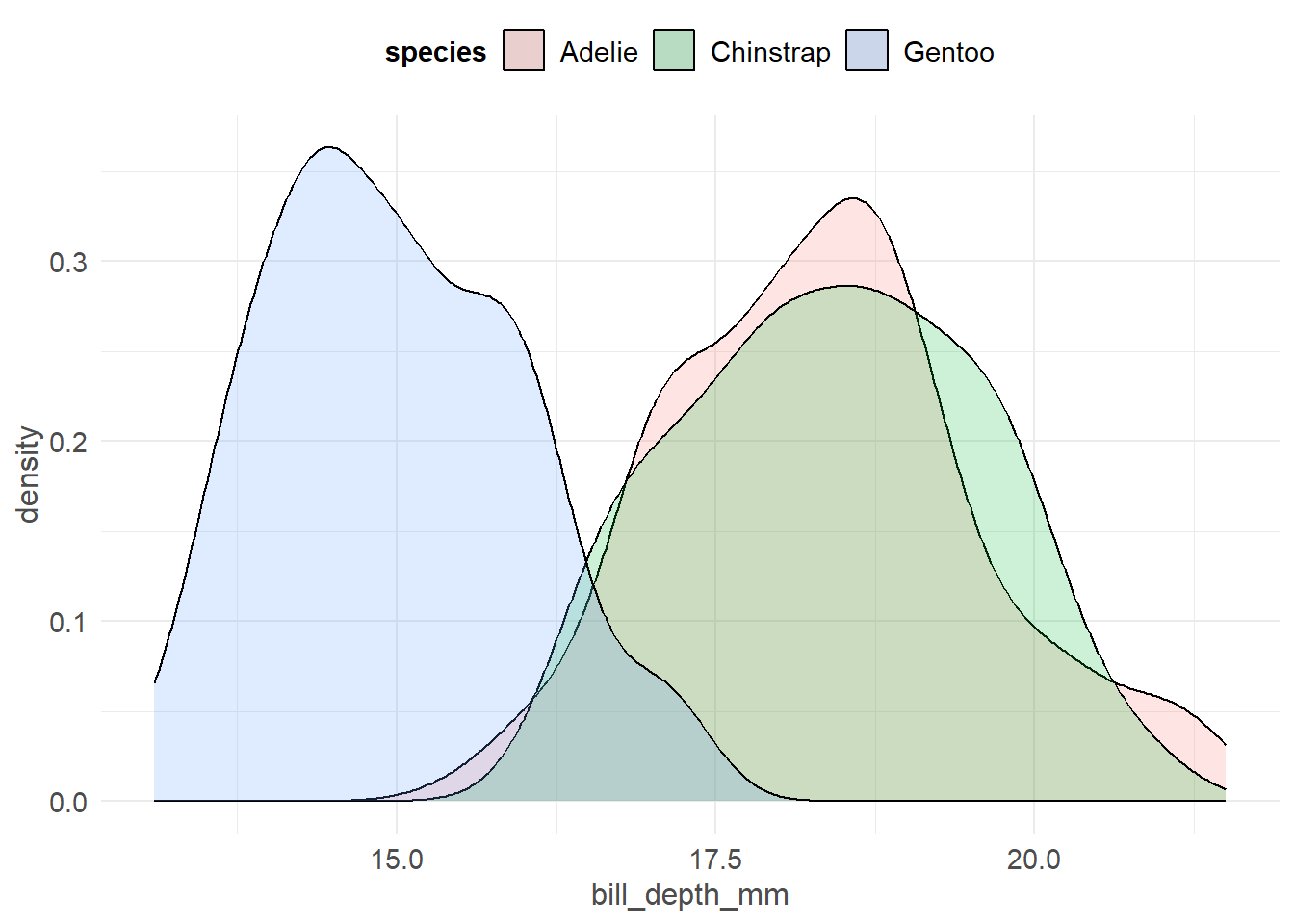 ggplot(pen, aes(x=bill_depth_mm, fill=species)) + geom_density()