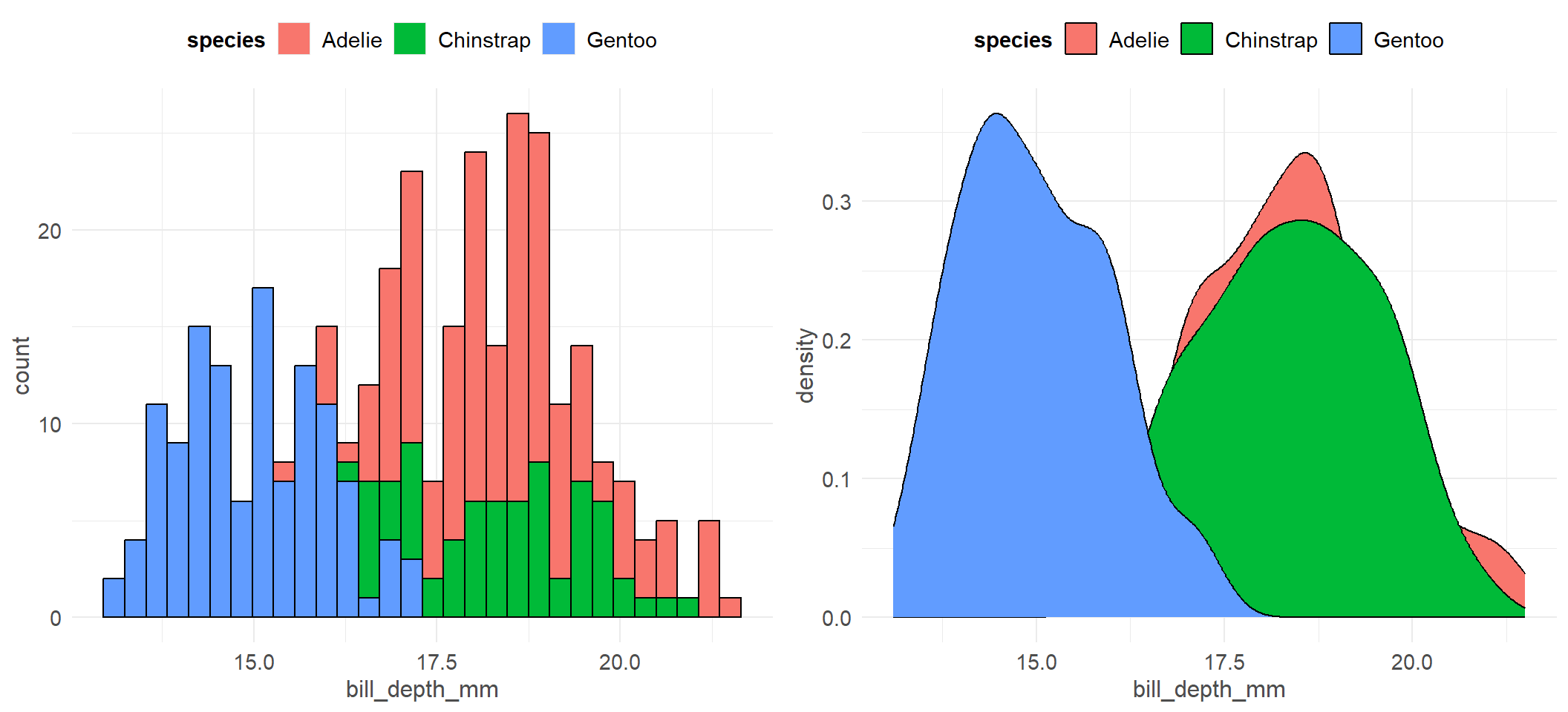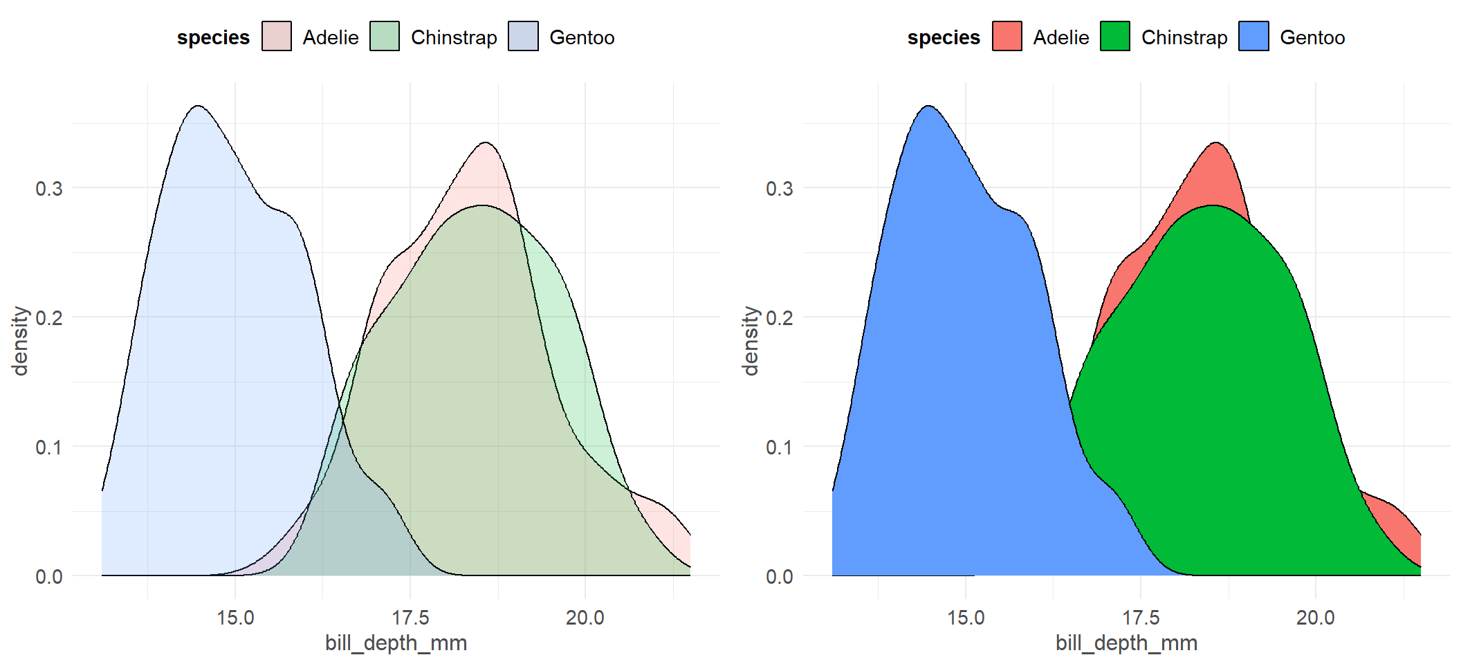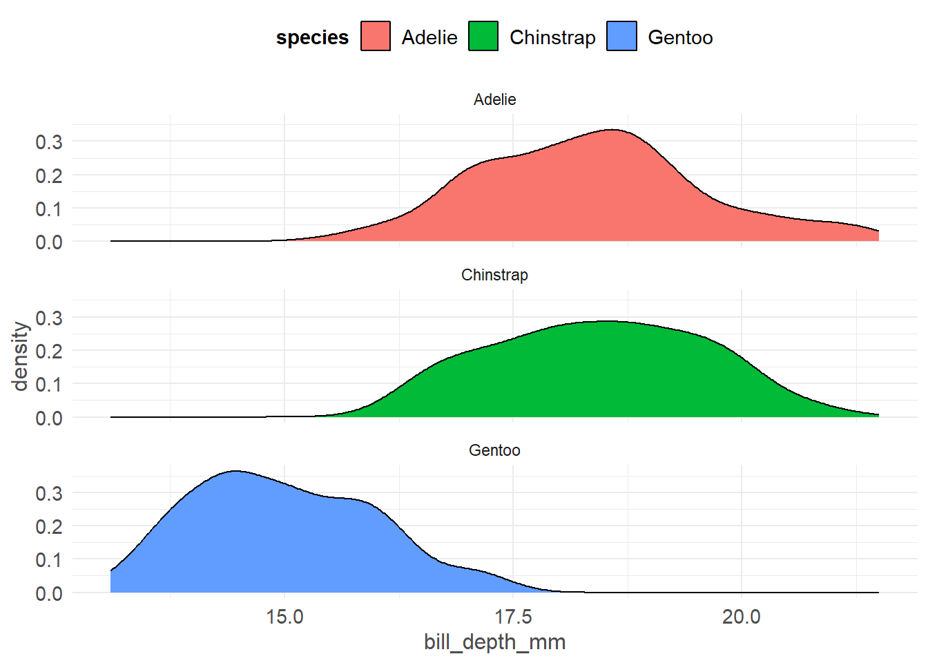 ggplot(pen, aes(x=bill_depth_mm, fill=species)) + geom_density()